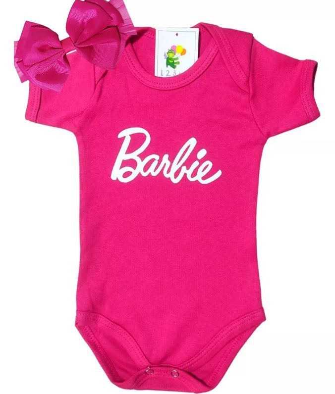 Body Barbie Infantil Bebê Menina Rosa+laço