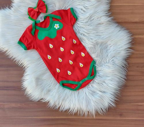 Body + Laço Tema Frutas Morango Menino / Menina Mesversario