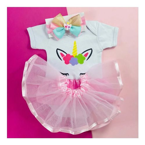 Body + Saia E Laço Bebê Unicórnio Meninos E Meninas Frases